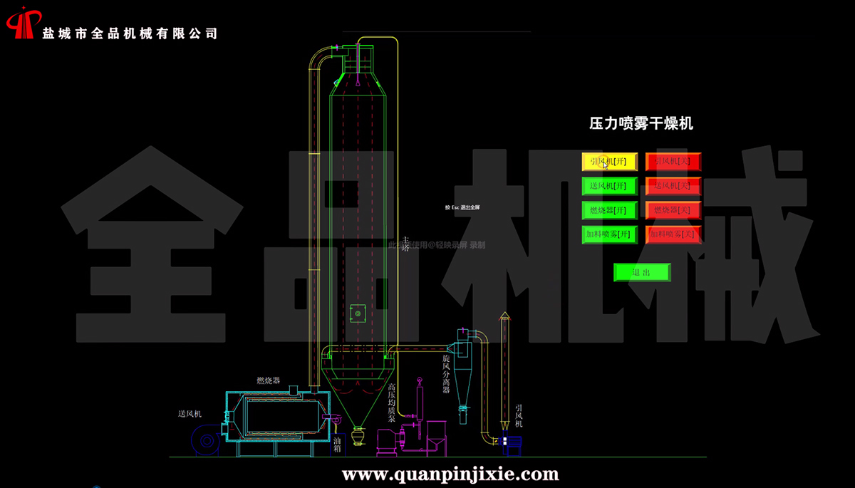產品簡介:壓力式噴霧干燥造粒機是采用壓力式霧化器借助隔膜泵的壓力將溶液或漿狀的物料霧化成細微液滴,使表面積顯著增大,經與熱風進行充分熱交換得以快速干燥(十幾秒至幾十秒),從而得到粉體或細小顆粒產品的設備。