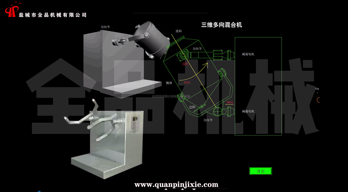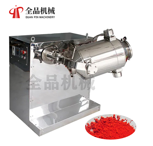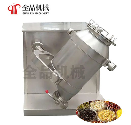 結構:該機由機座、傳動系統、電器控制系統、多向運動機構、混合筒等部件組成。與物料直接接觸的混合筒采用優質不銹鋼材料制造,桶體內外壁均經鏡面拋光。