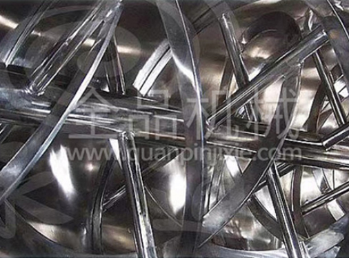 該機型由容器、螺旋攪拌葉片和傳動部件組成:螺旋葉片一般做成雙層或三層,外層螺旋將物料從兩側向中央匯集,內層螺旋將物料從中央兩側輸送,形成對流混合。